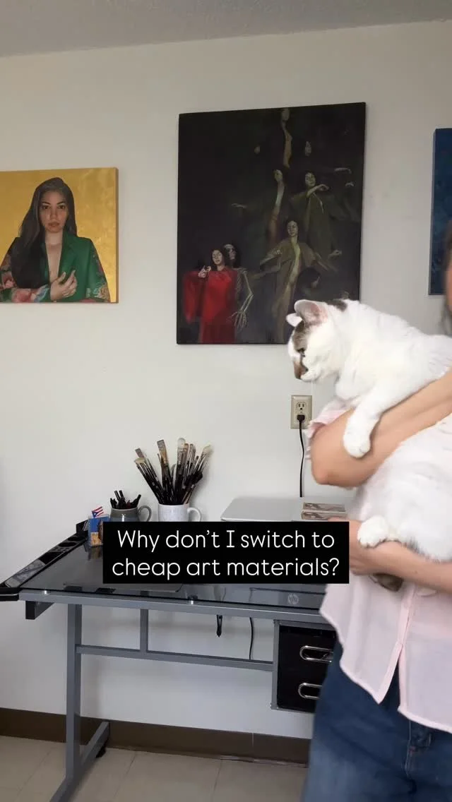 Hello! I'm Aixa Oliveras, a figurative oil painter creating art in Miami, FL. I create symbolic narratives based on my own experiences through the medium of oil paint. Working within the realm of contemporary symbolism, I pair the figure with pattern, color and gold leaf.